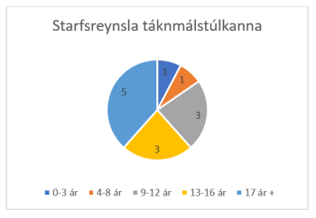 Starfsreynsla þessara 13 táknmálstúlka er mislöng, allt frá 0-3 árum upp í meira en 17 ár.